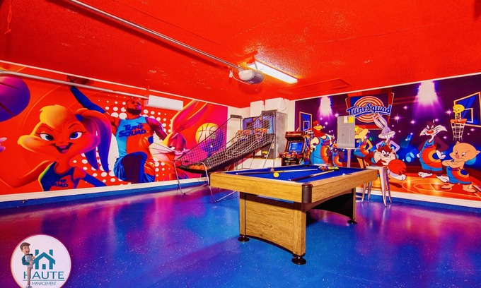 This home also features a garage that has been turned into an amazing game room with a pool table, Mortal Kombat arcade, and a 2-player shooting Basketball Arcade Game. There’s something for everyone here! Once you are done playing around, step inside the air-conditioned home to spread out comfortably in the inviting and well-appointed living room. Stream your favorite series and movies on the smart TV as you munch on your favorite snacks. Prepare delicious meals and snacks in the well-equipped kitchen, complete with appliances and all the essentials needed.