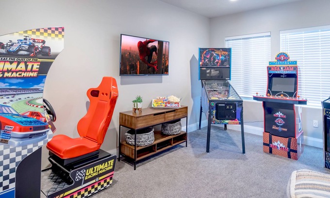 Entertainment: Enjoy your favorite shows and movies on any one of the 6 Smart TVs located throughout the house. The kids' dorm room also includes a PS3, PS3 games and cocktail table style arcade game with Pac-Man, Ms. Pac-Man, Donkey Kong and a total of 60 games. There is a ping pong table in the garage. Two washers and dryers.