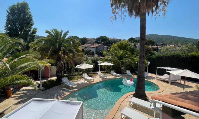 Providing a casino, Fantastic pool villa 900m to the beach; with extravagant big garden offers accommodations in Sainte-Maxime. This property offers access to a balcony, free private parking, and free Wifi. The pool features a pool bar and garden views. Offering a terrace and mountain views, the spacious villa includes 5 bedrooms, 2 living rooms, flat-screen TV, an equipped kitchen, and 4 bathrooms with a bath and a shower. Towels and bed linen are featured in the villa. This villa is allergy-free and non-smoking. After a day of cycling, fishing, or hiking, guests can relax in the garden or the shared lounge area. Croisette Beach is a 17-minute walk from the villa, while Chateau de Grimaud is 6.9 miles away. Toulon - Hyeres Airport is 32 miles from the property.