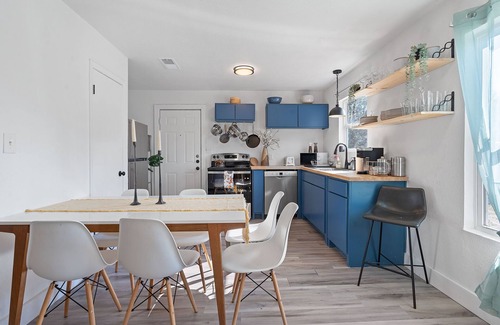 Discover Austin's Farbenfroh, a newly designed 4-bedroom haven for 12 guests! With newly remodeled dining, games & backyard with outdoor furniture, it's an oasis.