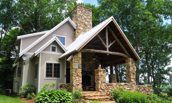 On the Windfall is a 215 acre mountain top property. Granny Mandy is one of 2 cottages privately located on this large parcel of land. Also see our smaller, Granpy Aut Cottage VRBO 1097295. Enjoy long range mountain views at nearly 4,000 ft in elevation. Explore the forest and ridge along marked hiking trails. This is a true rural escape. This amazing vacation cottage is comfortable and roomy. Relax on the large covered porch by the outdoor stone fireplace (one inside too) or on the stone patio overlooking Big Horse Creek Valley, Mt Rogers and Whitetop Mt. We are just 15 minutes from the VA Creeper Trail and 25 minutes from West Jefferson. This is a beautifully, hand crafted, built green, romantic, mountain cottage. 3 bedroom, 2-1/2 baths, (3) queens, (1) triple bunk, well appointed kitchen, (please note - for safety food items are not provided by host, including salt and pepper, stone fireplace, smart TV, Netflix, WIFI, assorted games, washer/dryer, air conditioning, charcoal grill. No pets. Property is managed by the family that owns it. Also see our other home, Granpy Aut VRBO #1097295