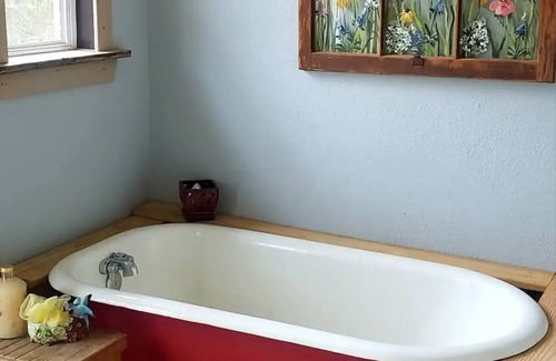 This memorable place is anything but ordinary. Come join us on our small farm where you will enjoy luxury glamping at its very best. Take it easy relaxing in the hammock of our solar secret garden, recharge with a bubble bath and a stint in our infrared sauna; or hang out at either of our two fire pits listening to my retro vinyl collection. Farm fresh breakfast, private yoga or photography sessions with our 1951 Ford truck available upon request.