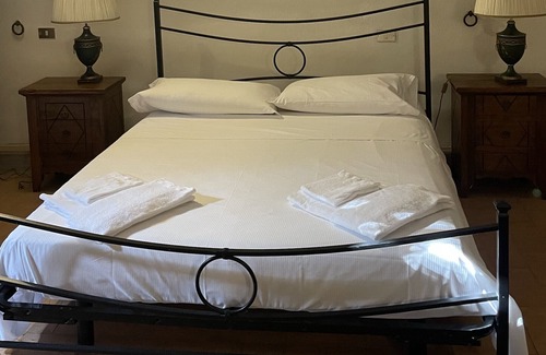 La Stalla apartment is located on the first floor of the old farmhouse. It is a large openspace room of about 50sqm with a double bed and two single beds and a kitchenette. Cool and quiet, it is perfect for a getaway as a couple or with children. Common areas are available both outside (veranda, patio, large garden surrounding the property) and inside the stutture (large living room, with television and fireplace). Private parking is available. Wi-fi available. It does not have air conditioning.