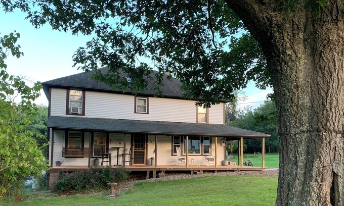 A great getaway mini resort. Also only 15 minutes from bethel woods concert venue The house is a classic farm house built in 1941 with many nice updates but still has all the character. Hard wood floors and center stairs with wraparound walkway upstairs.