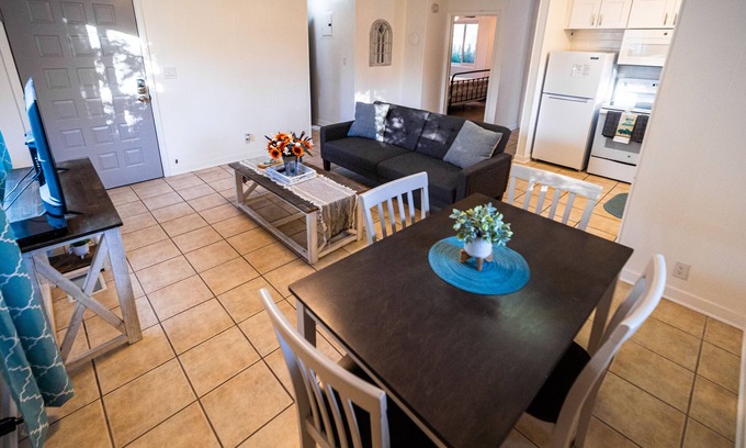 This 1 bedroom suite is the perfect location for a stay in Logan or just stopping through on the way to Bear Lake, Jackson Hole, or wherever your journey takes you. Cook meals in the full kitchen and wash your laundry in the free washer and dryers. In the warmer months enjoy a meal on the deck and let the kids or pets play in the enclosed back yard. Sleep great on the comfortable memory foam, queen mattress in the bedroom and a lay down couch in the living room. This suite comfortably sleeps 4 adults with a queen size bed and pull-out couch!