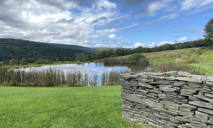Beautiful farmhouse at the top of a meadow, surrounded by apple trees, in the beautiful forever wild Catskill State Park. Historic but fully updated, renovated, decorated farmhouse is comfortable for a family or a small group. Situated at the top of a meadow on a working farm with a comfortable porch just 1/2 mile to a state trail system offers opportunity for endless exploration.