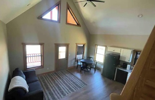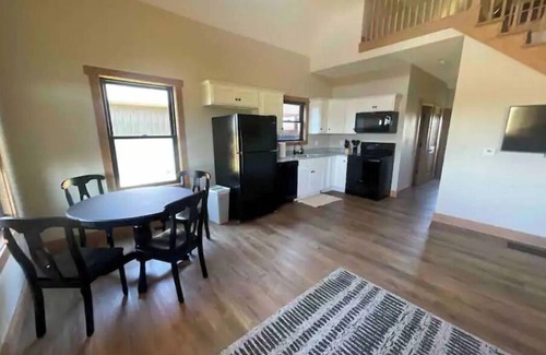 Enjoy convenience mixed with beautiful scenery in this newly constructed villa on the Bourbon trail. This space features 1 bedroom with a King bed, a loft with a Queen bed, pull out sofa, full kitchen, 1 full bathroom, in-unit laundry, and hot tub. Located on a private farm on HWY 127, and just minutes from the Bluegrass Parkway, Keeneland, Shakertown, Four Roses Distillery, and the Bluegrass Airport.