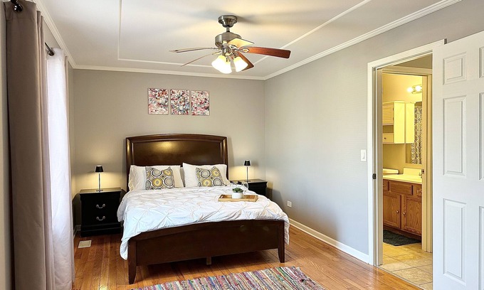 This spacious home has a fantastic backyard to relax in and an outdoor dining area. Head downtown to explore the area with shopping on the Magnificent Mile, dining with a view on the Navy Pier.