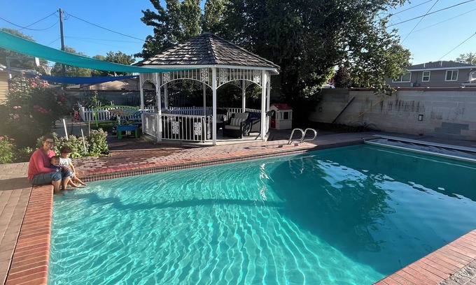 Yes, this Midvale house has a swimming pool. Check the Facility Overview section for details about the pool and other available facilities.
