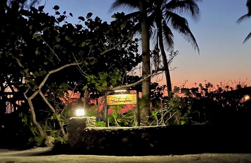 This apartment has a huge beach facing balcony with hammock, table and chairs. The master bedroom has a queen. There is a full sofa bed in the living room, a small but fully appointed kitchen and a bathroom with shower/bath. The Guest Apartment sleeps 4.