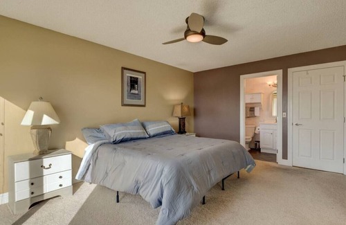 The home offers an inviting atmosphere, perfect for those who prefer staying in. Enjoy the convenience of our clean and fully functional kitchen, equipped with a coffee maker, microwave, and toaster. The added convenience of two bathrooms enhances your stay. This 2-bedroom, 2-bath home provides comfortable accommodations for four adults, with the option of two twin air mattresses for the kids.