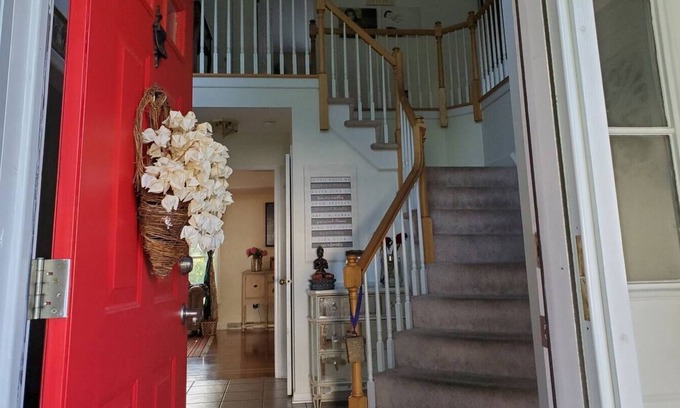 Guests are allowed to use the basement space ,parking are and the backyard if they want to feel some fresh air .The entrance is common for the guests and for us .