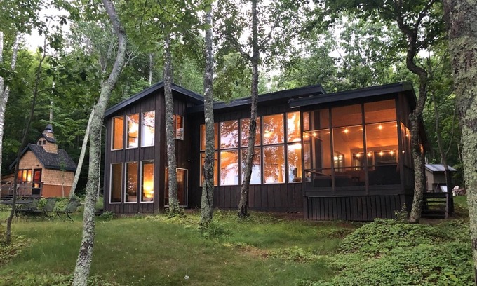 Feeling Superior is nestled on the north shore of Madeline Island. The two-bedroom, one-bathroom home also has a guest room that can accommodate two people (guest room is in a separate building just off the side of the home). Feeling Superior has been thoughtfully updated. The kitchen is open to the dining and living area and the wood-burning stove in the living room makes the entire home feel cozy.