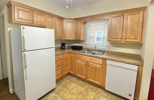 The kitchen comes with all major appliances (fridge, dishwasher, gas stove, and oven). All dish ware and cookware provided. There's a kitchen breakfast nook area that can seat 4 people.