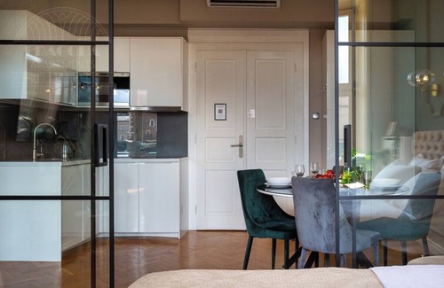 The Feniks tenement house, where the apartment is located, was built in 1932. There are 2 elevators in the tenement house, all apartments are air-conditioned. We are located in the center of the beating heart of the city - the Main Square. You can get there on foot, within a 5-10 minute walk there are many tram and bus stops. The main train station is a 15-minute walk away.