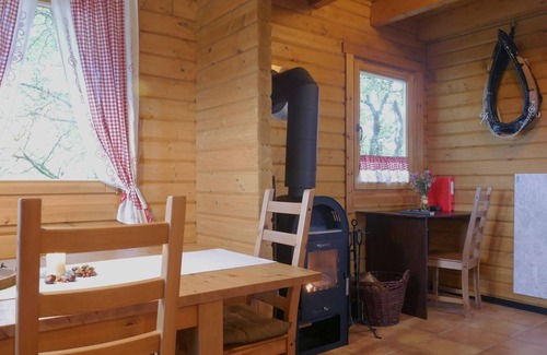 Das aus Holz erbaute Ferienblockhaus "Little Countryman" verfügt über einen offen gestalteten unteren Wohnbereich, der sich in Küche, Esszimmer und Wohnzimmer unterteilt. Ein Schwedenofen sorgt für gemütliche Wärme in den kälteren Monaten. Der Esszimmertisch bietet viel Platz, auch Kinderhochstühle stehen Gästen zur Verfügung. Der Wohnbereich schafft mit liebevollen Details eine gemütliche Atmosphäre. In der voll ausgestatteten Küche stehen Ihnen entsprechende Küchenutensilien zur Verfügung, sowie auch eine Waschmaschine mit integriertem Trockner. Allgemein ist der unterere Teil des Hauses mit Fliesenboden gestaltet. Die Holzwände im ganzen Haus sorgen für eine warme und gemütliche Atmosphäre. Im oberen Teil des Hauses befinden sich die Schlafzimmer. Das Haus bietet Platz für 8 Personen.
