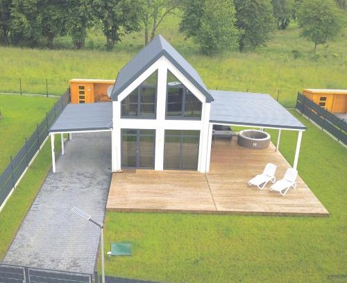 Ferienhaus Sophia 70qm bis 5 Gäste mit Fass-Sauna, Whirlpool April bis Oktober, 75qm Terrasse und eingezäunten Garten | House in Sierosław
