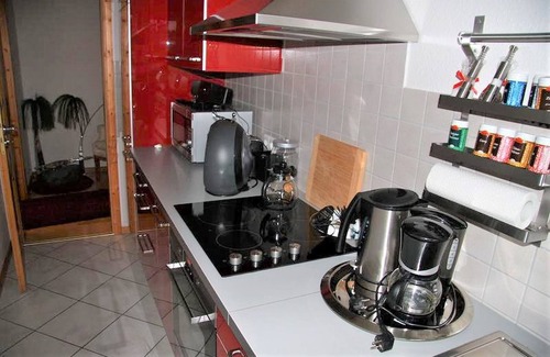 Die Nichtraucher-Wohnung hat ca. 55qm, 2 Zi + Kü + Bad/WC, Diele, Flur, 2 Balkone und liegt zentral in der Ortsmitte in unmittelbarer Nachbarschaft zur katholischen Wallfahrtskirche. (Glockengeläut ist nachst abgeschaltet) Bei klarer Fernsicht haben Sie Ausblicke bis zum Feldberg. Die Wohnung bietet ein Doppelbett (ca.2,00*2.00)im Schlafzimmer sowie eine Schlafgelegenheit auf einem zustellbaren Klappbett (0,90*2,00) mit vollwertiger Federkernmatratze für eine weitere Person bis ca. 100Kg. Die Wohnung ist modern, teilweise mit Design-Ausstattungen eingerichtet. Die von der Durchgangsstrasse abgewandte Süd-Ost-Ecklage, bietet Ruhe sowie schöne Belichtungsverhältnisse. 1 Balkon befindet sich vor Kü u. Schlafzimmer auf der Ostseite, während der 2 Balkon sich auf der Südseite befindet - dieser ist überdacht; beide stehen exclusiv den Mietern zur Verfügung. In Anbetracht der vorhanden Balkone ist die Nichtraucher-Wohnung durchaus auch für rücksichtsvolle Raucherinnen u. Raucher geeignet. Die einzeilige moderne EBKüche hat einen Kühlschrank mit Gefriefach, ein Kocherd mit einem Ceran-Kochfeld, einem Backofen mit Grill sowie eine Spüle mit Abfallbehältern zur Mülltrennung. Ausserdem ist die Küche mit einer Mikro-Welle, einem el.Mixer, el. Kontakt- u. Tischgrill, div. Kaffee-Maschinen, Tee-Aufbrühgerät, El.-Wasserkocher, el. Toaster etc. sowie einer küchenüblichen Kleinausstattung bestückt. Bettwäsche, Hand- u. Küchentücher befinden sich in der Wohnung. El. Staubsauger, div. Reinigungsgeräte sowie ein Bügelbrett mit Dampfbügeleisen sind im Badezimmer in einem sep. Schrank untergebracht. Ein TV-Flachbildschirm mit Receiver für Sat.-Empfang, ein CD-Player mit Rundfunkempfänger sowie eine Spielekonsole sind in der Wohnung vorhanden. Diverse Brettspiele, -Bücher, -Spiele für Konsole etc. befinden sich in der Wohnung. In der Tiefgarage steht unseren Gästen ein KfZ / Motorrad-Abstellplatz zur Verfügung, was besonders in den Wintermonaten von den Benutzern geschätzt wird. Der Winter- u. Streudienst wird durch die Hausverwaltung organisiert und von Dritten erledigt.