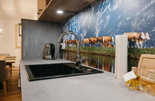 Close to skiing, cycling, and more, this smoke-free apartment brings it all within reach. There's convenient onsite parking, so you can leave your vehicle behind and let your feet make short work of the 9-minute walk to Mittag Cable Car or the 7-minute walk to Kapuzinerkirche St. Josef. If you're looking to expand your horizons and see other nearby locales, you can catch a train at Immenstadt Station, located within a 5-minute walk of your stay.