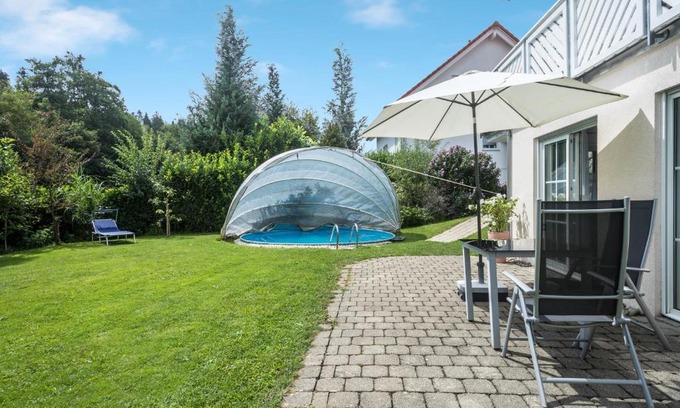 Featuring an outdoor pool and garden views, Ferienwohnung Dorada is set in Neukirch. This apartment has a garden, barbecue facilities, free WiFi and free private parking. The apartment features 1 bedroom, a TV with satellite channels, an equipped kitchen with a dishwasher and a microwave, a washing machine, and 1 bathroom with a bath. A children's playground is also available for guests at the apartment. Fairground Friedrichshafen is 18 km from Ferienwohnung Dorada, while Casino Bregenz is 26 km away. The nearest airport is Friedrichshafen Airport, 16 km from the accommodation.
