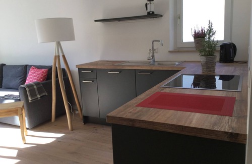 Die Ferienwohnung befindet sich im ersten Obergeschoss und ist circa 55gm groß. Es gibt einen offenen Wohn- und Küchenbereich mit einem separaten Schlafzimmer. Die Küche ist voll ausgestattet. Eine zusätzliche Schlafcouch für zwei Personen ist ebenfalls vorhanden. In dem großen Bad finden Sie eine Dusche, ein WC und ein Waschbecken. Der überdachte Südbalkon bietet Ihnen eine tolle Aussicht. Die beiden Ferienwohnungen im 1.OG (Laitschenbach und Strichkopf) können durch eine Verbindungstür auch gemeinsam genutzt werden. Wlan ist verfügbar.