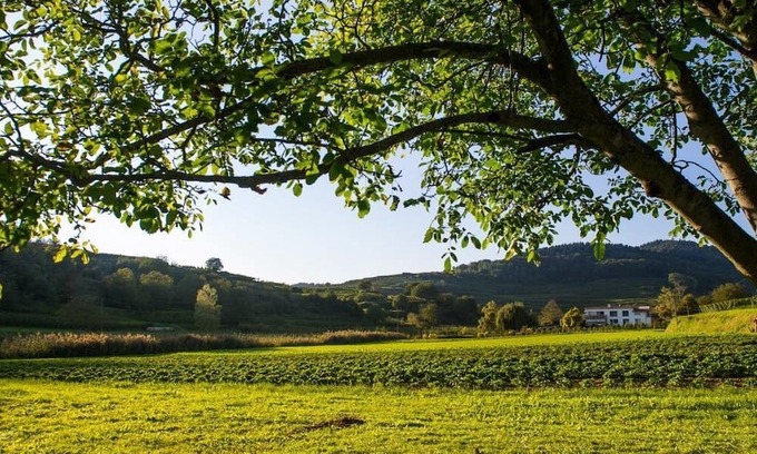 Unsere moderne, baubiologisch sanierte Ferienwohnung befindet sich in ruhiger, idyllischer Lage auf einem Bio-Betrieb (Obst, Gemüse, Wein) am Kaiserstuhl mit Blick in die Weinberge, auf Freiburg und den Schwarzwald. Im Hofladen (freitags geöffnet) kann man unsere Produkte, sowie ein kleines Sortiment an Naturkostwaren bekommen und diese in der gut ausgestatteten Küche zubereiten. Die Wohnung hat eine eigene Terrasse und Garten, sowie eine eigene Zufahrt mit Stellplatz.