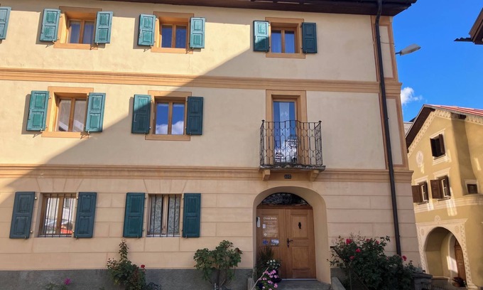 160 m2. More information by the provider: Large 8-bed apartment with 4 double rooms on two floors (160 m2), it is extremely comfortable, cozy and practically furnished. It offers a lot of space and is ideal to enjoy a vacation with a family of friends or together with grandparents or other friends. In the kitchen the housewives/men can really enjoy themselves. It is very comfortably equipped and some guests turn their vacations with us into real gourmet vacations. On the ground floor is one of four bedrooms. The other three double bedrooms are accessed via the nostalgic wooden staircase on the 1st floor. This way, some can retire for a while, while others can linger comfortably in the spacious Engadine living room at the mighty walnut table. On the ground floor there is a bathroom with a vaulted ceiling. The second bathroom is on the 1st floor. Both with window view to the east. The old pine and walnut wood that lines the living room and large parts of the apartment crackles and creaks and never loses its very special scent. The apartment is constantly kept in swing. Our goal is to offer you feel-good vacations. Translated with www.DeepL.com/Translator (free version)
