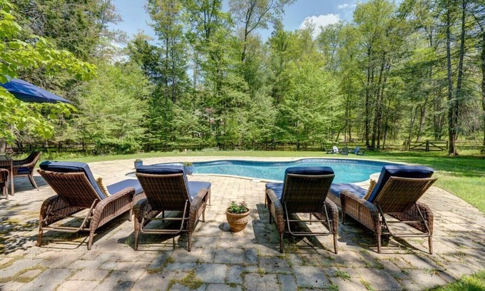 Fern Leaf Farmhouse - Stylish in Narrowsburg is located in Narrowsburg. Fern Leaf Farmhouse - Stylish in Narrowsburg provides accommodation, featuring Pool, Balcony/Terrace, Laundry, among other amenities. This House features Pool, Balcony/Terrace, Laundry, to make your stay a comfortable one.