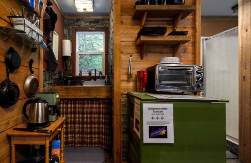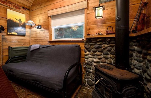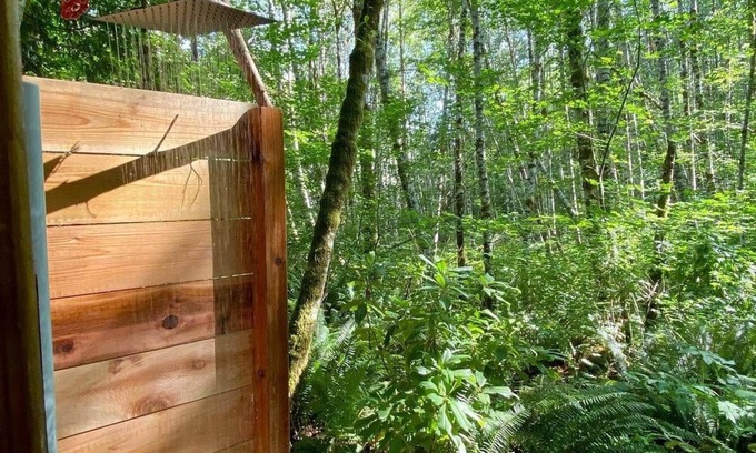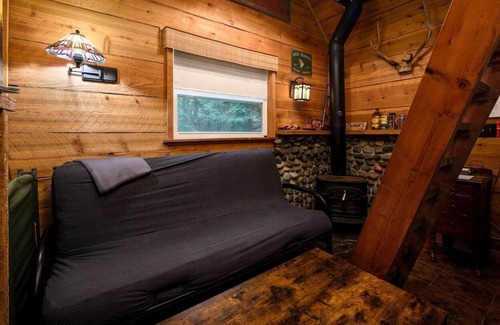 75% Airbnb, 25% camping. NO WiFi, limited cell service. Ladder access to lofted bedroom. You may come across a bug or two in the cabin. Outdoor shower, outdoor kitchen, outdoor life -- but still fall asleep with a roof over your head.