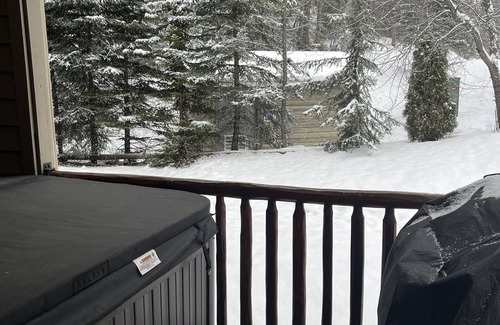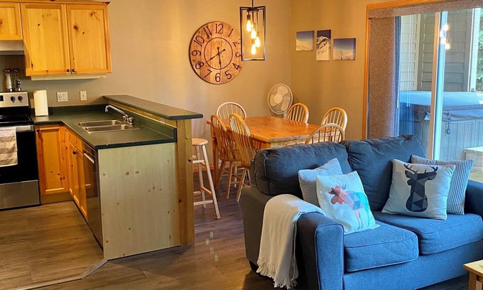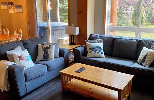 **Aug.2025 Due to work on exterior of condo the deck and hot tub are unavailable at this time.** You will love this cozy, home base at Fernie Alpine Resort. A short walk to resort amenities and ski right to your door. There are two bedrooms and two bathrooms The main bedroom has a queen bed and full bathroom, and the second bedroom has a twin over queen bunk bed. Cook in your full kitchen with new appliances in an open living plan and then relax by the fireplace or in your private hot tub.