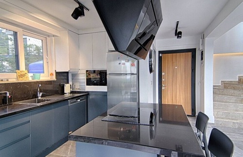 Mutfak : Modern Amerikan mutfakta buzdolabı, çamaşır makinası, bulaşık makinası, fırın, mikrodalga fırın, ankastre 4'lü ocak, elektrikli su ısıtıcısı, su sebili, yemek takımı, tost makinası, çaycı, kahve makinası, çatal bıçak seti, tavalar, tencereler, bardaklar, mutfak araç ve gereçleri bulunmaktadır.