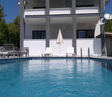 Offering a garden, Fethiye Villa provides accommodations in Fethiye. This property offers access to a balcony, free private parking, and free Wifi. The pool features a water slide and pool views. Providing a terrace and mountain views, the spacious villa includes 6 bedrooms, a living room, satellite flat-screen TV, an equipped kitchen, and 5 bathrooms with a bidet and a shower. Guests can take in the views of the garden from the patio, which also has outdoor furniture. The villa offers bed linen, towels, and laundry service. Guests at the villa will be able to enjoy activities in and around Fethiye, like walking tours. With an outdoor fireplace and a picnic area, this villa offers plenty of opportunities to chill out. Calis Beach is 1.2 miles from Fethiye Villa, while Ece Saray Marina is 7.4 miles from the property. Dalaman Airport is 27 miles away, and the property offers a paid airport shuttle service.