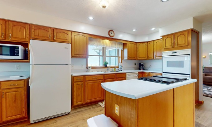 Inside, the light-filled interior boasts comfortable furnishings, sprawling living quarters, and modern amenities. The kitchen makes cooking a breeze with its updated appliances and center island, whereas both the sunroom and living room offer comfortable spots for visiting with your loved ones. The private washer/dryer ensures your vacation garb is always refreshed, and the home's internet access will keep you constantly connected.