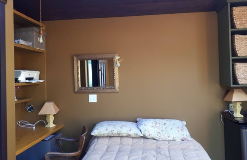 Our cabin is suited to single or double occupancy -the bed has adjustable head, foot and massage options- very comfortable with 100% cotton sheets, and views of the stars at night through the overhead skylights. The bathroom and shower overlook the fig tree. A flatscreen TV, coffee maker, electric kettle, pots, pans and some cutlery, glasses and plates, induction cooktop and fridge are some of the amenities. Weather permitting, we have set up an outdoor kitchen on the patio with electricity and cold running water. Cross the country road and you are at the ocean with the choice of several great walks. We are within a block of a great pub and a corner store with liquor and basic essentials and just a few blocks from our local coffee shop and a great spa near by.