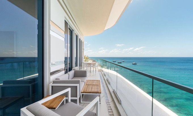 Special care and a distinctive eye created the uniquely elegant, and delicate décor in this spacious home. Although all FIN units are uniquely designed with sophisticated, luxurious décor, the care for design in this home is unmatched. Elegant, rich, art-deco inspired décor with stunning, wallpaper features are offset by sleek, modern elements and breathtaking ocean views.