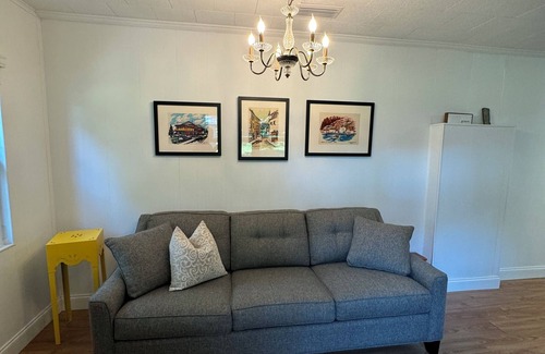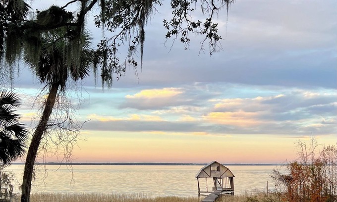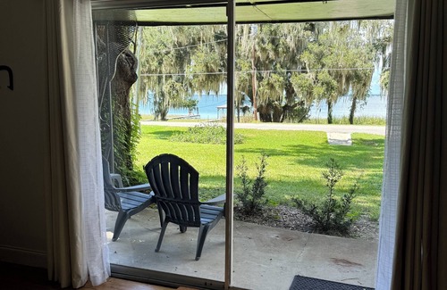 Find peace & recharge in the beautiful Lake County countryside. This is a two bedroom, two bathroom home on Lake Harris; one of Florida’s largest lakes and a popular bass fishing destination. This lovingly updated lakeside bungalow is a cozy backdrop for rest & relaxation. This comfortably furnished lakeside bungalow has two bedrooms, two bathrooms (master en suite), a full kitchen (minus dishwasher), Keurig coffee bar, living room, sitting room (with a sleeper sofa), Roku smart TVs, washer/dryer, & sublime views throughout for a serene lakeside retreat. There is a bench swing near the shoreline, picnic blankets in the unit, and a pair of Adirondack chairs with which to enjoy the property. Enjoy a peaceful walk down Lakeshore Drive to the acclaimed Yalaha Bakery. 25 minutes to Mount Dora, 15 minutes to Tavares, 15 minutes to Leesburg. 10 minutes to the Tavares boat ramp, 10 minutes to the Leesburg boat ramp. The dock is dilapidated, and for your safety, guests are not allowed to use it. There is plenty of space to park a trailered boat. Pets are welcome (please leash your pets around the shoreline and be mindful of wildlife). We’ll send you our list of local recommendations when you book.