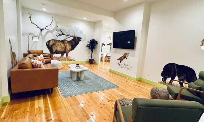 Stay at "Findley Butte", a large luxury 2nd FL condo in Enterprise's historic Litch Hotel, blending modern comfort, vintage charm and a Zumwalt Prairie theme. It features 11 ft ceilings, original exposed stone wall in 2 bedrooms, real wood floors, 2 tiled bathrooms, one with a clawfoot tub, quartz countertops, locally handmade tableware, and AC.