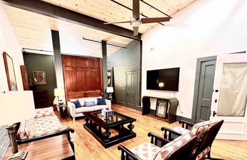 Luxury two bedroom apartment on the second floor of a fine furniture factory. Each bedroom room has a queen bed and LED TV. Just 15 minutes from Holiday World. The space does have the potential for daytime noise.