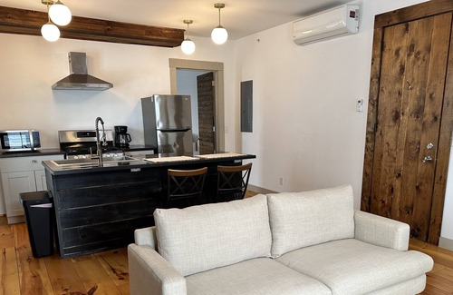 This Unit offers Space efficiency, an Eating Bar, Washer, and a Dryer. One of two apartments only. Wide plank floors, Mini split system. Located in up-and-coming Newburgh, NY. The city sits nestled by the Hudson river, boasting dramatic views of the Hudson. Cafes and restaurants are with in walking distance.