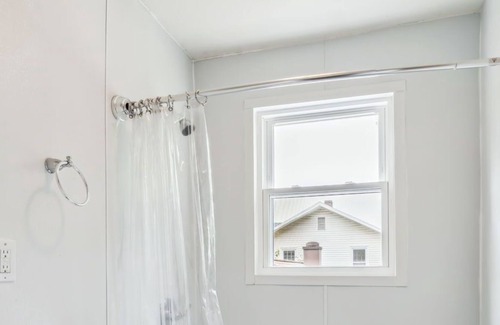 The well-appointed bathroom is stocked with starter toiletries, including toilet paper, soap, and shampoo, allowing you to settle in right away. A hairdryer is also provided for your convenience.