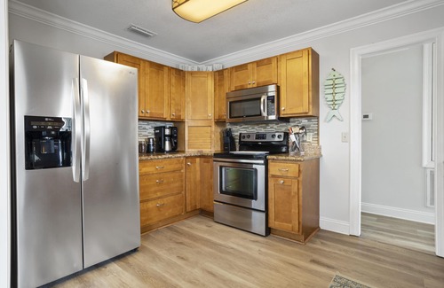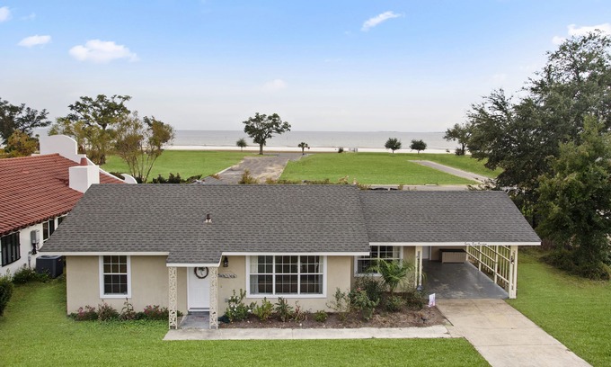 The Finley House is located just steps from the beach, Jones Park and Island View Casino, in beautiful Gulfport MS. Wake up with ocean views from nearly all rooms in the house! This beautiful non-smoking three bedroom two bathroom house was completely renovated in 2011 with a brand new kitchen and with high quality new furniture added throughout including a large wall mount Flat Screen TV! The Finley House includes complimentary wireless internet and television access. Relax in our spacious dual living room or step outside on the gorgeous covered deck area with amazing coastal views. Whether its fishing, sightseeing, gambling or soaking in the sunshine, you're never more than a few steps away.