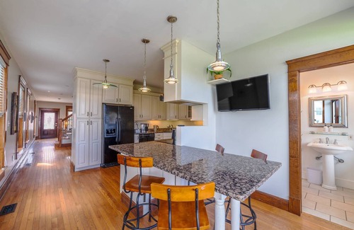Upstairs, two large bedrooms offer plenty of comfort and privacy. The primary king suite features a private bathroom and its own front balcony. The second bedroom includes a queen bed, a twin daybed with a trundle, a private bathroom, and a back balcony with a view of the concerts in Central Park. Both rooms provide ample storage, plus there’s a convenient hallway closet with a washer and dryer.