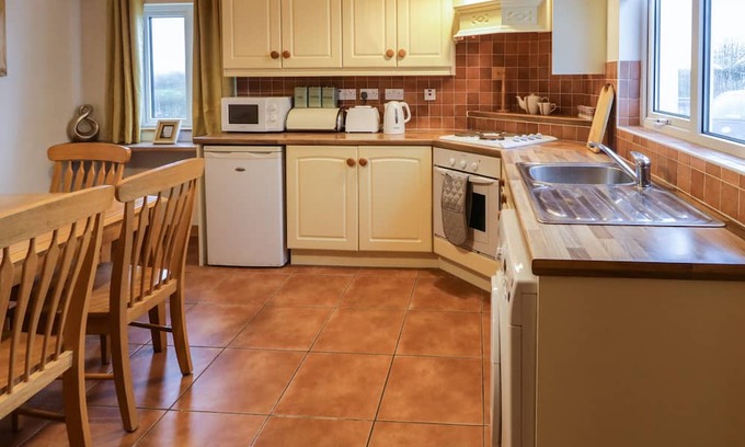 Amenities: Oil central heating. Electric oven and hob, microwave, fridge, freezer, washing machine. Smart TV, WiFi. Fuel, power, and starter pack for woodburning stove inc. in rent. Bed linen and towels inc. in rent. Highchair and travel cot available. Private driveway. Sorry, no smoking and no pets. Sorry, no stag or hen parties. Shop and pub 1.9 miles. Note: Check-in from 4pm, check-out by 10am Note: This is located on a working farm.