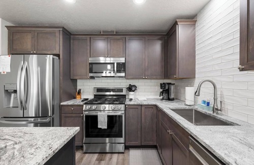 Unwind in the spacious master suite, complete with a plush king bed and private bathroom featuring a shower/tub combo. The second bedroom offers a cozy queen bed, ideal for couples or friends. The third bedroom is designed with flexibility in mind — a twin-over-full bunk bed that’s perfect for kids, teens, or extra guests. Each room is thoughtfully furnished to ensure everyone has a comfortable place to rest after a day of adventure.