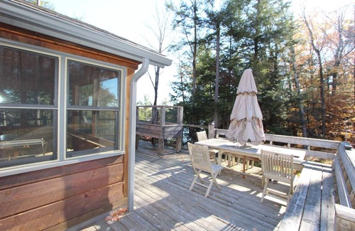 Spend the day swimming, canoeing, kayaking, playing games, hiking on the trails behind the cottage, and relaxing on the dock or wrap around deck.