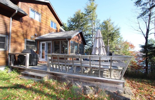 The master bedroom has a king-sized bed with two closets, en-suite bathroom with custom-built over-sized shower. Fall asleep to the sounds of loons, whip poor wills, owls, and occasionally howling wolves.