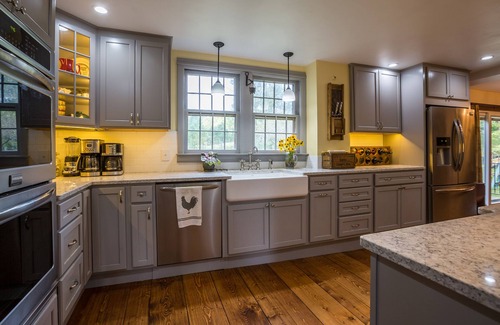 Location - "Leave your troubles outside, in here everything is beautiful" - Emcee. A favorite with initiated travelers and truly Vermont at its best! Perfectly located in the shire of Weston with grazing cows on one side and the West River on another. Home with en-suite bathrooms, great room with brick fireplace and piano, chinoiserie parlor with hearth stove and built-ins, formal dining area, and a new kitchen with double ovens and pot filler. Grounds feature perennials, apple trees, stone walls, swimming pool, an old barn, and scenic vistas at every turn. Fly-fishing, hiking, skiing, biking trails, theatre, and even Benedictine Monks at Weston Priory are all nearby! Just a short walk to the Weston Theatre Company and the original Vermont Country Store. *Bedroom #7 in the main house is set up as a den for smaller groups, but has rollaway beds and a sofa available for larger groups. Additional housing available nearby.