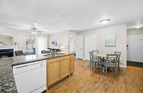 The living room is cozy with a gas fireplace, couch, side chair and a slider to the patio. The large smart TV is ready to go for streaming or there are included channels! Wifi is available throughout the unit and you'll also find a pack n' play and high chair for little ones.