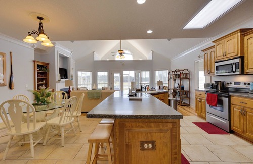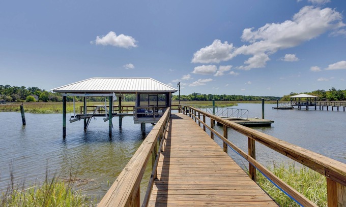 A coastal escape awaits at this charming vacation rental in Darien! The 5-bedroom, 4-bath house provides you with an on-site dock for kayaking and fishing. When you venture out, you can fish at WaterFront Park, explore Fort King George, and sample fresh seafood downtown. After your adventures, return to this bayside escape for drinks on the deck and late-night chats around the fire. Your Georgia trip is sure to be peachy!