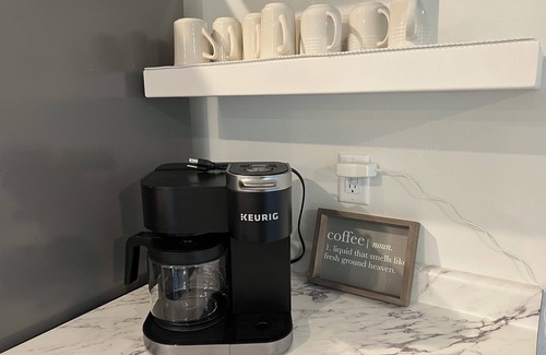 Spacious and fully equipped kitchen with a large island (tableware, Keurig and drip coffee machine, pots & pans)